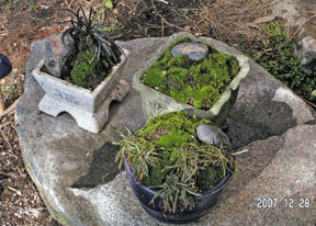 I like your pots of moss and stones ... the large flat stone the pots are sitting on is eye catching.